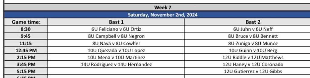 See below for the full Pool Play and Bracket Play schedule for the 2024 Fall Ball End of Season Tournament!